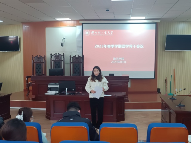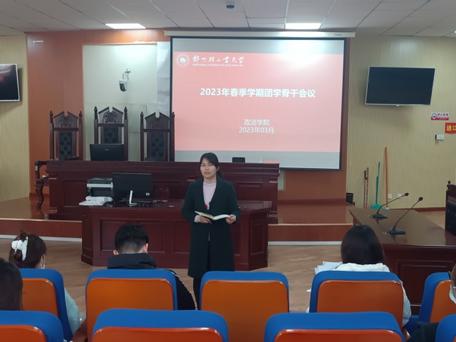 为贯彻落实习近平总书记关于青年工作的重要思想,推动新学期共青团各项工作的顺利开展,31日中午,政法学院在活动中心112室召开2023年春季学期团学骨干会议,学院党委副书记刘放美、全体辅导员、全体团学骨干参与了本次会议。