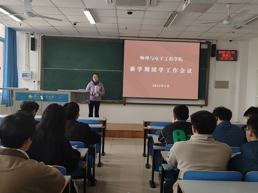 3月1日中午,物理与电子工程学院在二教楼704室召开新学期团学工作会议,学院团委书记周芳华及全体团学骨干参加了此次会议。