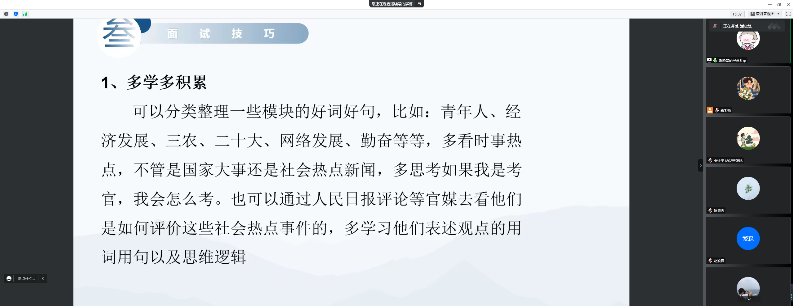 此次公务员面试指导交流会的成功举办,让同学们更深入地了解了公务员面试的相关知识,也更明确了今后的面试中所应注意的重点,提高了同学们面试备考的针对性和实效性。