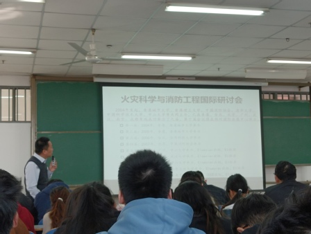 消防科普中心主任、安全工程专业副教授姚浩伟博士作报告,建筑电气与智能化专业2019级学生和部分专业教师参加。