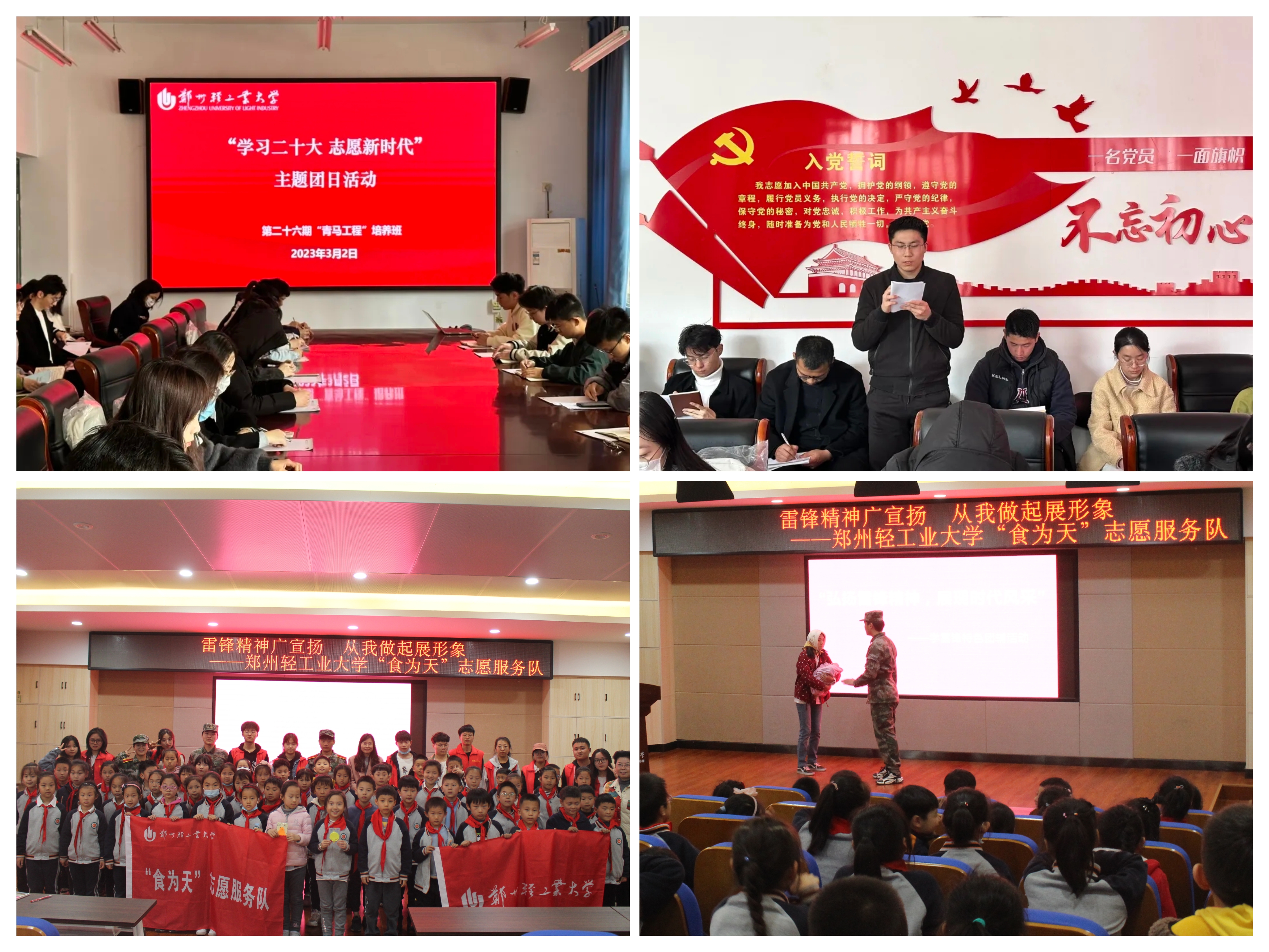 今年是毛泽东等老一辈革命家为雷锋同志题词60周年。校青马班、三实书院、食品与生物工程学院、青年马克思主义学习研究会学子通过主题团日活动、主题宣讲等形式,诵读雷锋日记,讲好雷锋故事,阐明雷锋精神的时代意义,让雷锋精神根植青年心灵,凝聚起广大青年学生奋进新征程、建功新时代的青春力量。