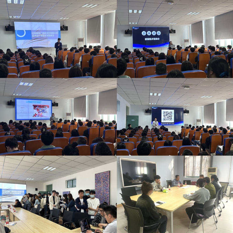 随后,河南网络广播电视台有限公司面向在座毕业生进行河南网络广播电视台有限公司2023届校园招聘会,由王春燕女士通过PPT向在场的师生详细介绍河南网络广播电视台有限公司的发展历史、业务范围、员工成长通道等相关信息,让同学们对该公司有了一个全面的认识。接着,分别由市场部李娜女士、媒体营销中心王梦吟女士、内容产品中心谷雨先生及数字化创新发展部崔航先生介绍本部门对应的业务及岗位情况,并就工作环境、住宿条件、薪资待遇以及未来的发展路径等同学们比较关心的问题进行了互动交流。