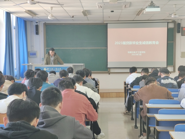 3月13日下午,物理与电子工程学院召开2023届贷款毕业生诚信教育大会。学院学生资助工作专职辅导员王伟夙老师,2023届贷款毕业生参加了会议。