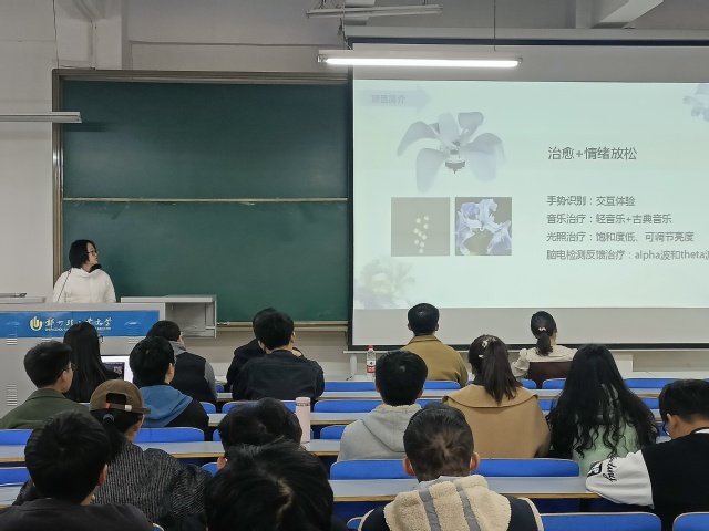 比赛开始,主持人详细讲解了项目答辩要求及比赛流程。经过前期报名征集及材料初筛,“识瘤者-基于实例分割的恶性皮肤肿瘤筛查与评估系统”“随心停-基于AIOT的空闲车位引领系统”“步态卫士-基于数据融合的下肢步态康复评估系统”等33个项目脱颖而出,参加答辩路演。参赛选手结合PPT及实物演示,从项目意义、功能架构、技术应用、商业价值、市场发展等多个方面展示自己的作品。评审老师从作品立意、研究方法、项目完成度、项目创新性及实用性等各个角度进行了逐一提问并给出了项目发展建议。