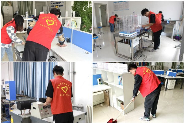 实验室负责老师向志愿者们强调了注意事项、分配好清扫任务,志愿者们甘当“一颗最小的螺丝钉”,积极踊跃参与其中。志愿者们一丝不苟、干劲十足,对摆放凌乱的设备、积灰的实验器材、杂乱的实验台都进行了细致的清理,不放过任何一处角落。志愿者们热情投入,在服务人民、助人为乐中发现自我、实现自我。