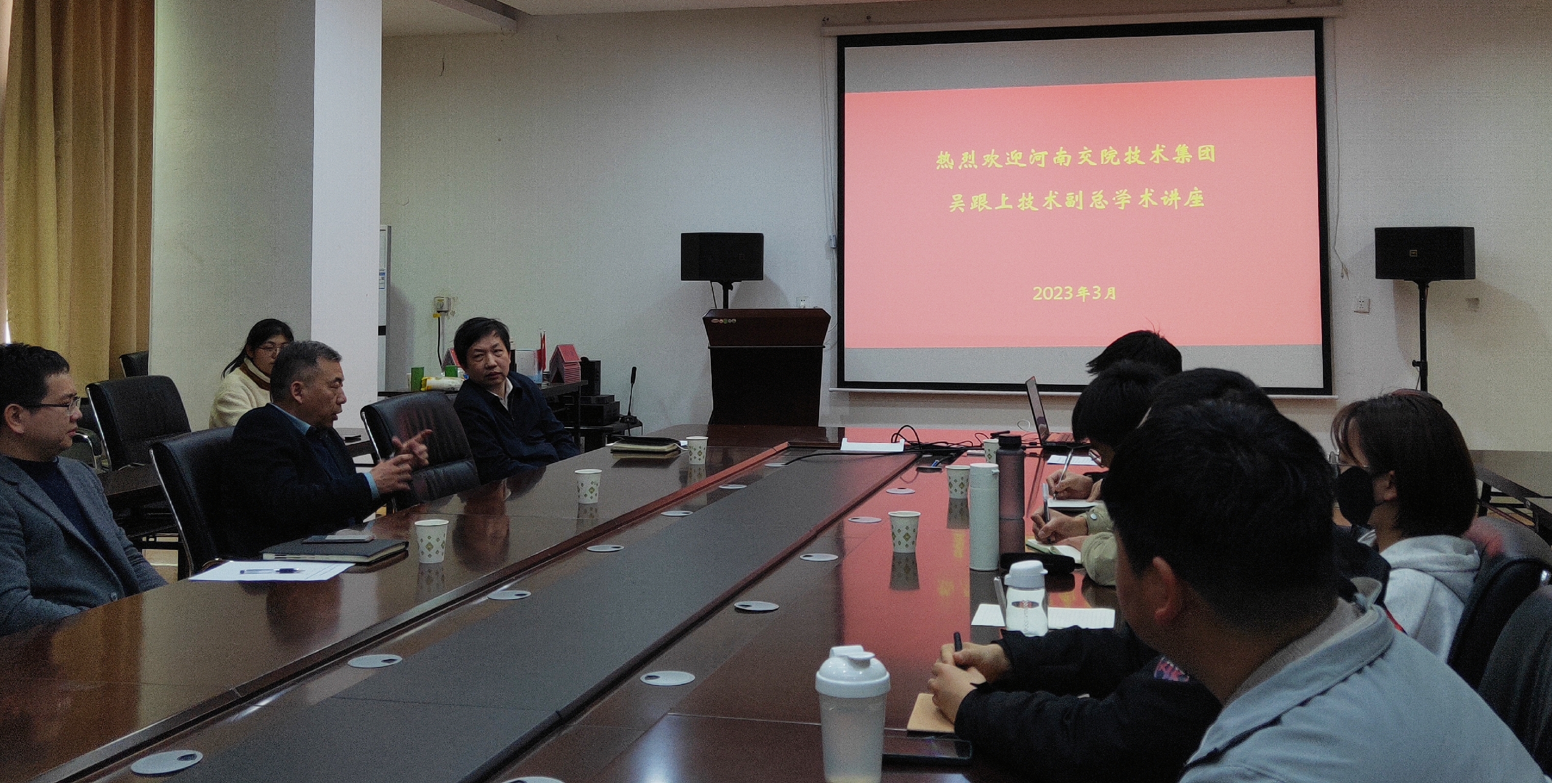 应机电工程学院邀请,2023年3月22日,河南交院工程技术集团吴跟上技术副总来我校交流。机电工程学院副院长何文斌、学科骨干和研究生参加了交流。