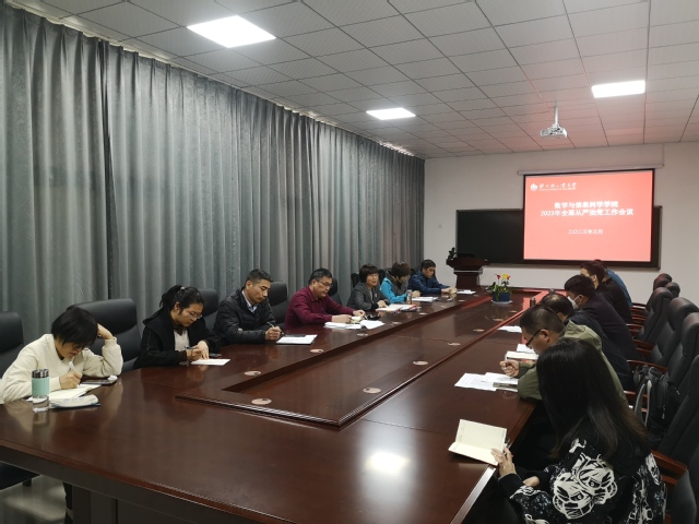 3月29日下午,数学与信息科学学院在东一楼310会议室召开全面从严治党暨统一战线工作会议。会议由学院党委书记郭晓丽主持,学院领导班子、全体科级干部参加会议。