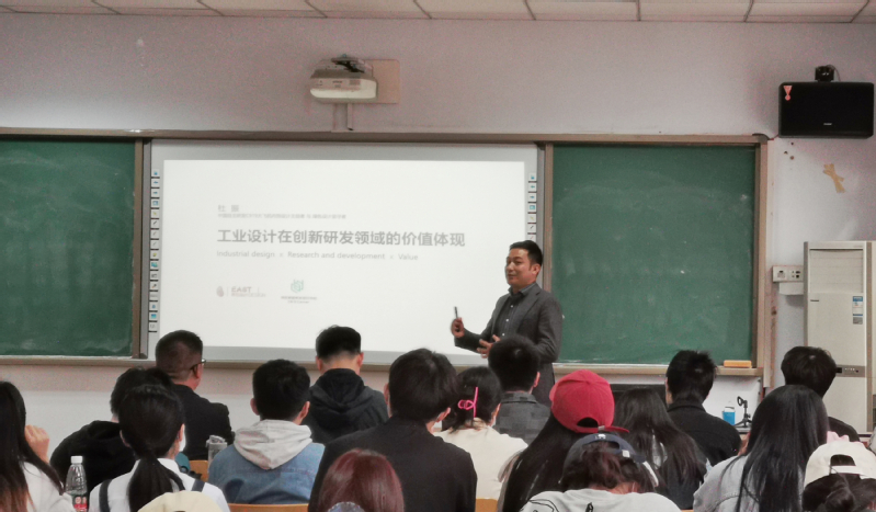 讲坛初始,杜振校友首先给同学们分享了自己20多年来坚持在工业设计最前端的经验和见解,通过公司简介,工业设计前端研发,创新研发的重要性等几个方面带领同学们感受了创新研发对于工业设计的价值和意义。其次他结合自己亲身经历和实际案例建议同学们在工作和学习中要发挥自身长处,把自身优点发挥到极致,一定能在学习和工作中找到自己的价值。最后,杜振校友解答了同学们在专业领域的疑惑,鼓励同学们在学习中要理论和实践相结合,发挥长处,灵活运用所学到的知识。杜振校友精彩的讲解使同学们受益匪浅。