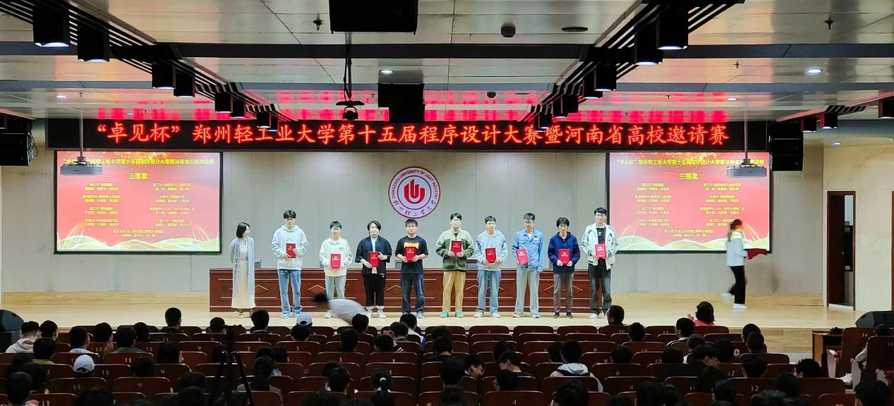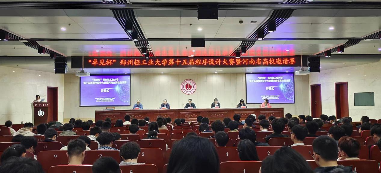 第十五届程序设计大赛暨河南省高校邀请赛。此次比赛由教务处、工程训练中心、校团委主办,计算机与通信工程学院承办,郑州卓见软件科技有限公司赞助,比赛由三名成员组成队伍报名参赛,共吸引了郑州大学、河南工业大学、河南农业大学、河南中医药大学、中原工学院等17所省内高校以及我校选手报名参加。