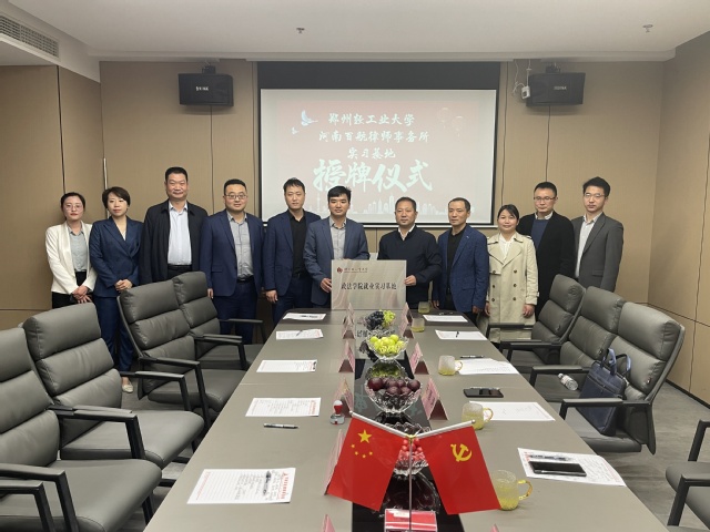 在交流座谈中,宋德涛书记详细介绍了学院发展、办学特色、人才培养、社会实践、毕业生规模等方面情况,希望通过访企拓岗进一步加强与用人单位的沟通联系,促进用人单位对学院毕业生的了解,为学生就业拓展更多平台。天津益清(郑州)律师事务所主任陈建伟介绍了律所的发展历程、业务范围、律师行业现状等情况,河南百航律师事务所主任刘金龙介绍了律所的发展理念、业务领域、办公环境、用人需求和对法律人未来的一些思考,并鼓励和支持我院法学专业毕业生为建设法治社会贡献力量。双方还就法学专业毕业生的就业选择、职业成长、岗位要求、实践锻炼、人才培养、讲座培训、导师指导等方面进行了交流讨论。随后,学院分别与天津益清(郑州)律师事务所、河南百航律师事务所签订了就业实习基地协议书,举行了就业实习基地授牌签约仪式。宋德涛表示,开展“访企拓岗”是深化学校与用人单位合作的重要途径之一,也是学院提高人才培养质量、推动毕业生高质量就业的需求,希望双方能够进一步拓宽合作的广度和深度,聚焦人才培养、实习实训基地建设和毕业生就业等领域,强化学生就业观念引导、毕业实习指导和职业能力提升,增强大学生就业信心,提升就业能力,共同携手取得更多合作成果。