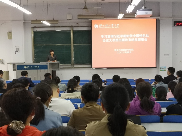 4月13日下午,数学与信息科学学院在东一楼218室召开学习贯彻习近平习近平新时代中国特色社会主义思想主题教育动员部署会,学院全体教职工参加会议。会议由学院党委书记郭晓丽主持。