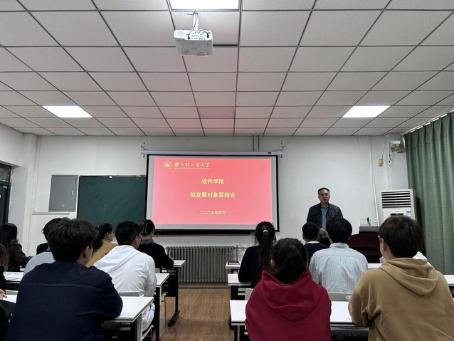 为进一步贯彻落实《中国共产党发展党员工作细则》相关规定,根据“控制总量、优化结构、提高质量、发挥作用”的总要求,全面考察学生发展对象的综合素质,保证新发展党员的质量,近日,软件学院分别在软件楼112室、和219室召开2023年上半年学生党员拟发展对象推优答辩会。软件学院党委书记武丰龙、党委副书记马欢、各支部书记、辅导员及研究生、本科生代表参加会议。