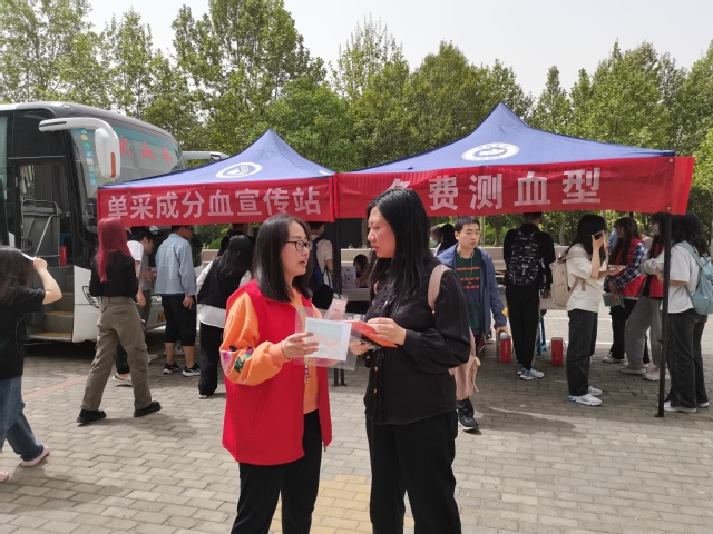 为弘扬无私奉献精神,普及无偿献血知识,让更多的人了解并主动参与到无偿献血中来,4月12日中午,政法学院联合河南省红十字血液中心在清苑餐厅门口举办“无偿献血科普宣传进校园——免费测血型”活动,为我校学子科普献血相关知识,鼓励同学们主动献血,用爱心为生命助力,用行动为生命助跑。