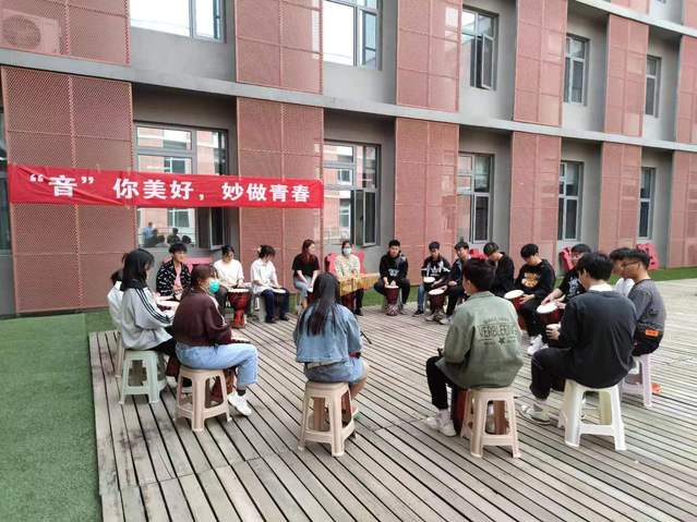 活动在书院同学的钢琴演奏、笛声奏响、吉他弹唱等才艺展示下拉开了帷幕。一首肖邦的钢琴旋律,如行云流水般倾泻,让大家沉醉其中;更有陈思萌老师的笛声与学生的钢琴合奏,传递着春天鸟语花香、阳光明媚的美好世界;流行音乐的吉他弹唱,也让大家跟随音乐一起哼唱,引得现场掌声连连,氛围高昂。活动第二环节是“青春畅谈”,同学们写下自己对之后大学生活的期许、对未来生活的描绘、对自己想说的话,分享内心的乐事,诉说心中的不快,记录有意义的瞬间,为未来送上美好祝福。每个同学的贺卡表露着真情,字字句句传递着真意。活动第三环节叫做“鼓圈音乐”,同学们在活动场地上聚坐一圈,在手铃、非洲鼓中挑选自己喜欢的乐器,跟随引领者学习着拍打音乐的节奏,共同练习,合奏出了一首优美的乐章,现场氛围高涨,笑声起伏不断。最后环节是“DIY乐器制作”,同学们通过现场中的现有材料,创造出可以发声且美观的“乐器”,深受同学喜爱。