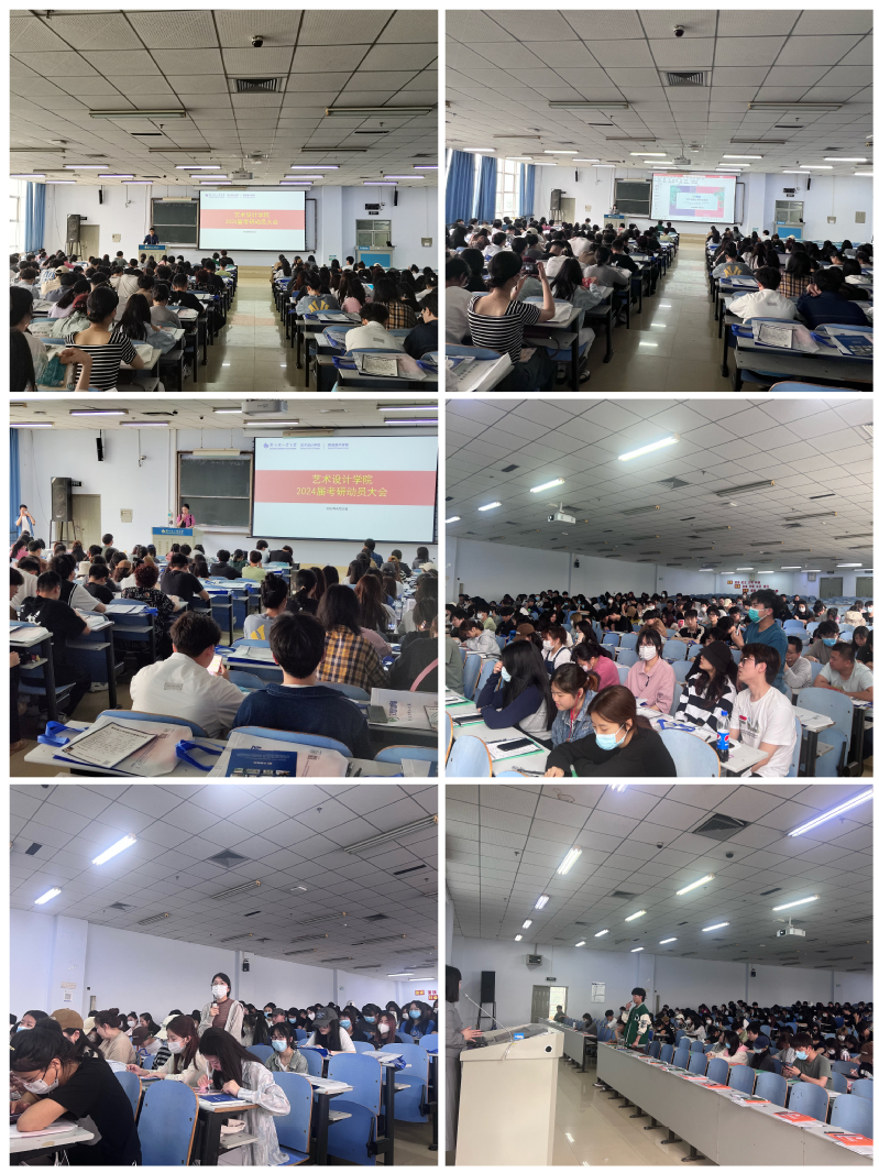 为进一步提升学院人才培养质量,充分调动学生考研积极性,帮助学生树立考研自信心,4月20日下午,艺术设计学院在教三楼302举办了2024届毕业生考研动员大会。邀请文都教育项目部婉璐女士针对艺术类专业考研情况进行解读。学院党委副书记贾红雨、辅导员白婷及400余名学生参加,动员会由辅导员张广佳主持。