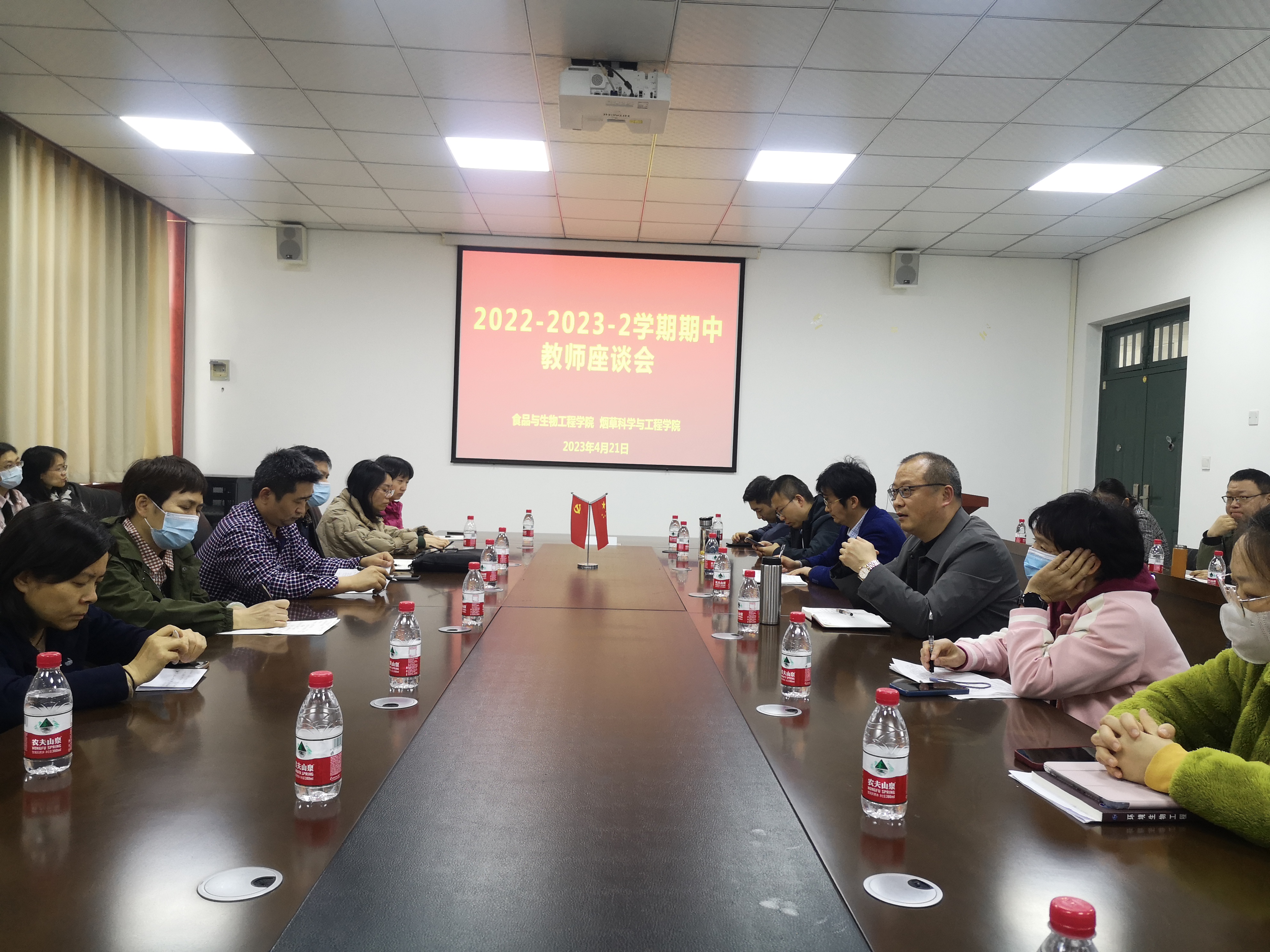 4月20日-21日,食品与生物工程学院(烟草科学与工程学院)在食工楼401先后召开了期中教学检查学生座谈会和教师座谈会。学院副书记李英梅、各专业负责人、各年级专业学生代表共40余人参加了学生座谈会,学院教学督导组成员、各专业负责人、教师代表出席了教师座谈会,座谈会由副院长杨靖主持。