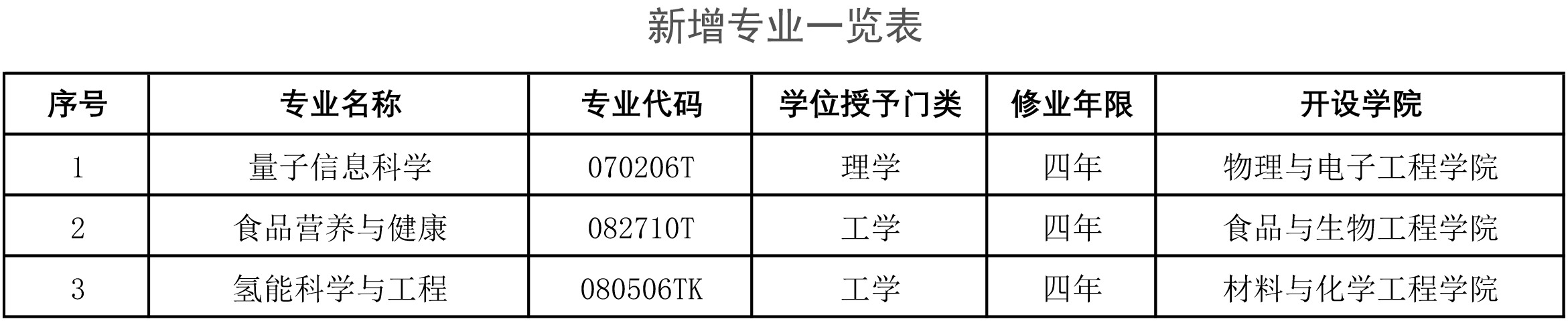 近日,教育部发布《关于公布2022年度普通高等学校本科专业备案和审批结果的通知》(教高函〔2023〕3号),我校申报的量子信息科学、食品营养与健康、氢能科学与工程3个本科专业成功获批。目前,我校本科专业总数增至74个,其中,国家级一流本科专业建设点25个,居省内高校第四位。