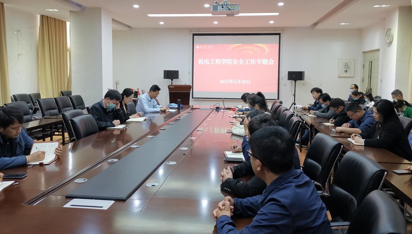 428日下午,机电工程学院在西三楼215会议室召开安全工作专题会议。学院党委书记刘国豪、副书记孙琳、副院长何文斌,全体辅导员、班主任,实验室负责人等参加会议,会议由刘国豪主持。