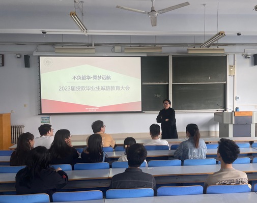 会上,韩老师围绕还款流程、还款时间和方式、利息起止时间、贷款展期的办理等内容进行详细讲解,并结合实际案例,从个人征信安全的角度向同学们强调要重视个人信用,号召大家要将诚信意识内化于心,外化于行,用自身的实际行动争做讲诚信、勇担当的新时代有为青年。希望贷款毕业生常怀感恩之心,自立自强,努力拼搏,奋发向上,用实际行动回报学校、社会和国家。最后,韩老师与贷款毕业生进行了答疑互动交流。