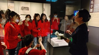 在博物院工作人员的带领讲解下,学员们参观了“泱泱华夏·择中建都”和专题陈列“明清河南”、“中原古代石刻艺术展”、“丹淅吉金——中原楚国青铜艺术”等多个展厅,包括陶瓷、玉器、书画、铜器和石器等藏品陈列,仔细观看了展示河南历史文化的数字多媒体,通过博物馆工作人员的精彩的讲解,深入了解了河南的文化底蕴和发展历程。从仰韶文化点燃中华文明第一缕曙光,到夏都二里头遗址揭开王国时代的神秘面纱;从贾湖骨笛跨越八千年的回响,到妇好鸮尊见证青铜时代的巅峰……,一套套珍贵文物,让同学们仿佛穿越历史时空将中原特色文化细细重温,一件件重器,无不诉说着五千年华夏的历史更迭。跟随工作人员参观结束后,学员们组织开展文物讲解活动,利用自由参观时间,对自己感兴趣的河南省博物院九大镇院之宝进行讲解录制,活动中,同学们积极参与,踊跃报名,进一步加深对历史文物的了解和传播。