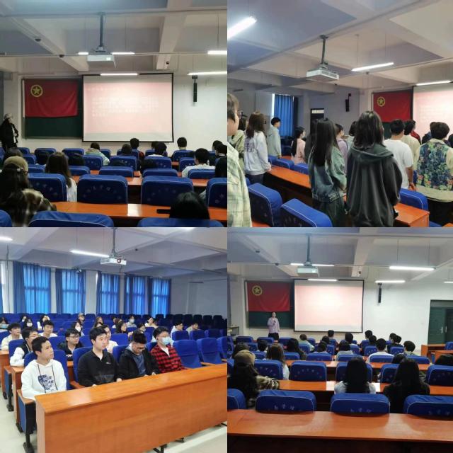 本次活动共分为三个部分:重温入团誓词、回顾学习习近平总书记对青年的殷殷寄语和分享感悟。活动伊始,主持人带领大家重温入团誓词,坚定信念,不忘初心,慷慨激昂的铮铮誓言,震撼激励着现场的每一位共青团员,深刻引发了同学们对历史赋予其自身的青春使命的思考。接着,主持人与大家共同学习习近平总书记对青年的殷殷寄语和分享感悟。在五四青年节到来之际,习近平总书记给中国农业大学科技小院的学生回信中说,同学们只有走进乡土中国深处,才深刻理解什么是实事求是、怎么去联系群众,青年人就要“自找苦吃”。新时代中国青年就应该有这股精气神,希望同学们能志存高远、脚踏实地,把课堂学习和乡村实践紧密结合起来,厚植爱农情怀,练就兴农本领,在乡村振兴的大舞台上建功立业,为加快推进农业农村现代化、全面建设社会主义现代化国家贡献青春力量。同学们认真倾听,感悟思考,从习近平总书记的话语中获得启发、汲取力量。活动最后,张哲哲同学分享了自己的对于五四精神的学习心得:青年学子是整个社会中最积极、最有生气的力量,我们应该抓紧在学校的大好时光,学好专业知识,练就本领,将课堂专业知识与社会实践相结合,用自己的专业知识去建功立业,服务社会。