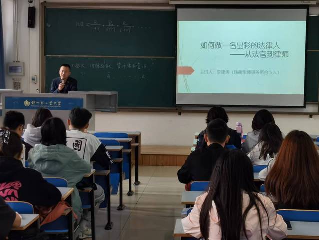 此次讲座为政法学院法学系开展的法律实务专家进校园系列讲座之一,也是法学专业在协同育人发展理念下的有效尝试。这种双师课堂的创新型人才培养模式,不但有助于引导法学专业学生进行科学合理的职业生涯规划,而且能够有效推动法学专业学生提高创新创业能力与综合素质。