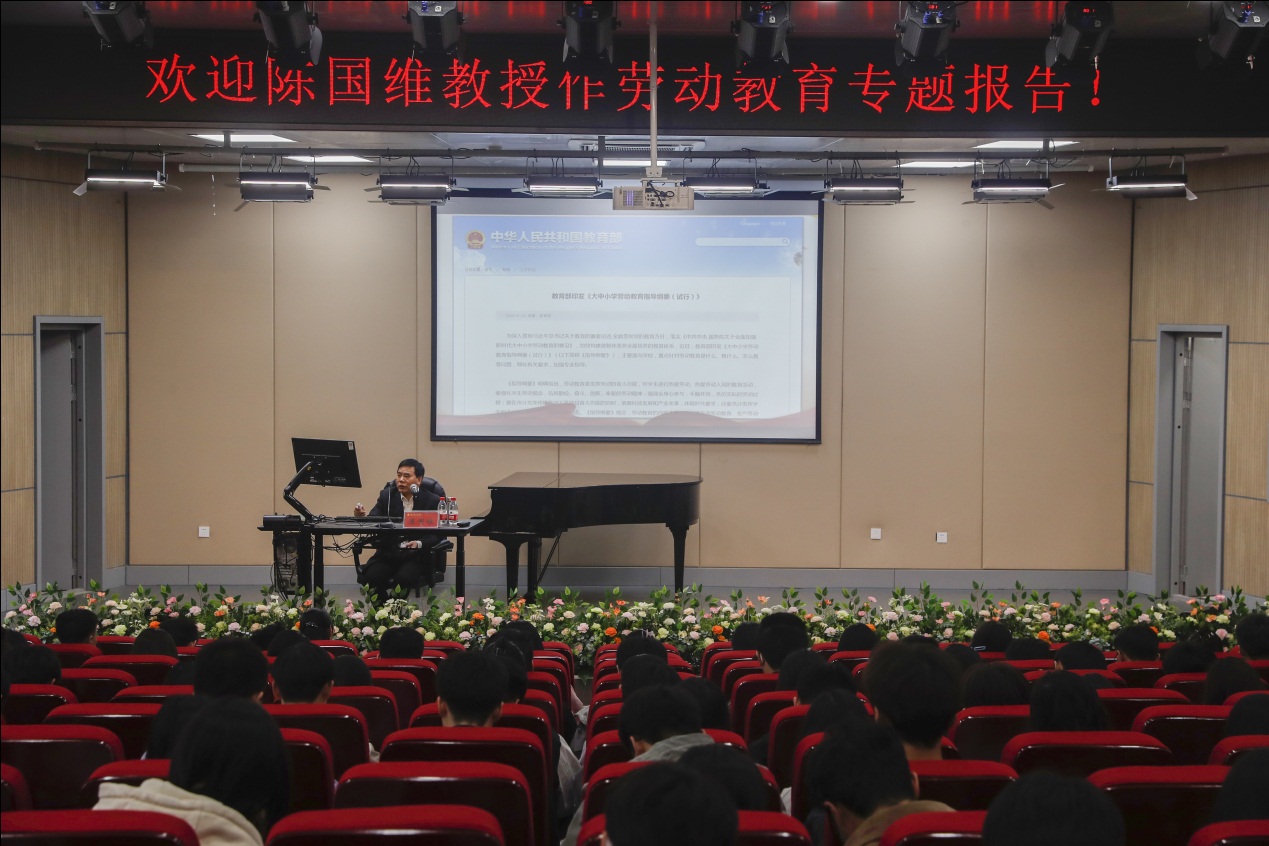 陈教授从劳动教育意义和价值观、劳动教育内容和劳动权利保障等方面作了精彩的报告。陈教授鼓励学生积极投身劳动实践,进一步提升劳动素养和劳动品质,提高创造性劳动的能力。陈教授的报告既有理论的高度,又有丰富的事例。同学们仔细聆听了报告,全面了解劳动的重要性,纷纷表示要争做懂劳动、会劳动、爱劳动的时代新人。