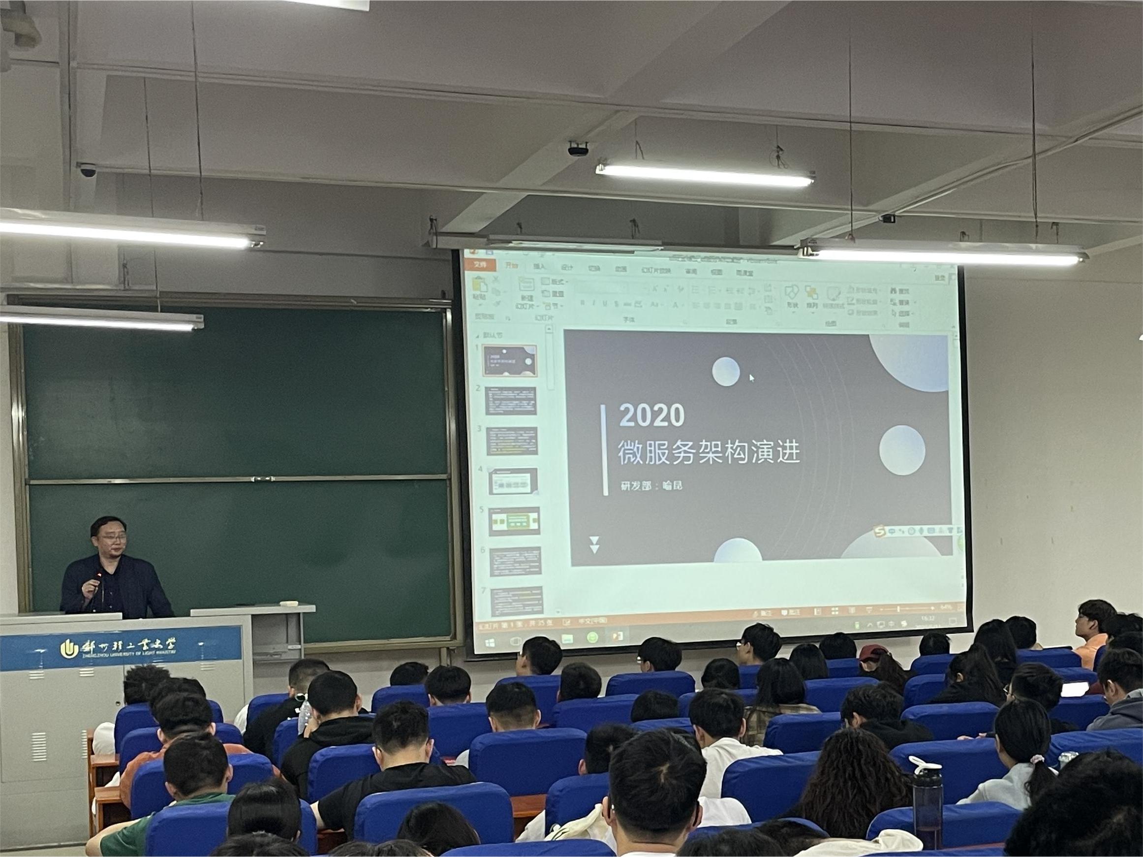 首先,喻昆老师以“架构之美、来源自然”为主题,以微服务架构演进为切入点,详细阐述了架构的概念、优缺点与意义,在此基础上讨论了最新架构体系的优越性与未来的发展趋势,并以阿里淘宝的架构层次搭建为例,展示当前行业前沿科技与技术瓶颈。随后,孙姗姗老师以“大学生职业生涯规划”为主题,结合自身经历与公司职业生涯发展,分别从毕业生求职路径、就业方向、晋升渠道、薪资待遇等方面做详细讲解,建议学生要尽早树立目标,做细职业生涯规划,找准就业方向,鼓励学生认真学习专业知识,提高自身综合素质,积极向行业人才标准靠拢,最后,对企业文化、行业发展与招聘需求做宣讲。讲座现场气氛融洽,互动的交流环节,同学们踊跃提问,主讲老师结合自身经验和感悟给出了解答和建议。