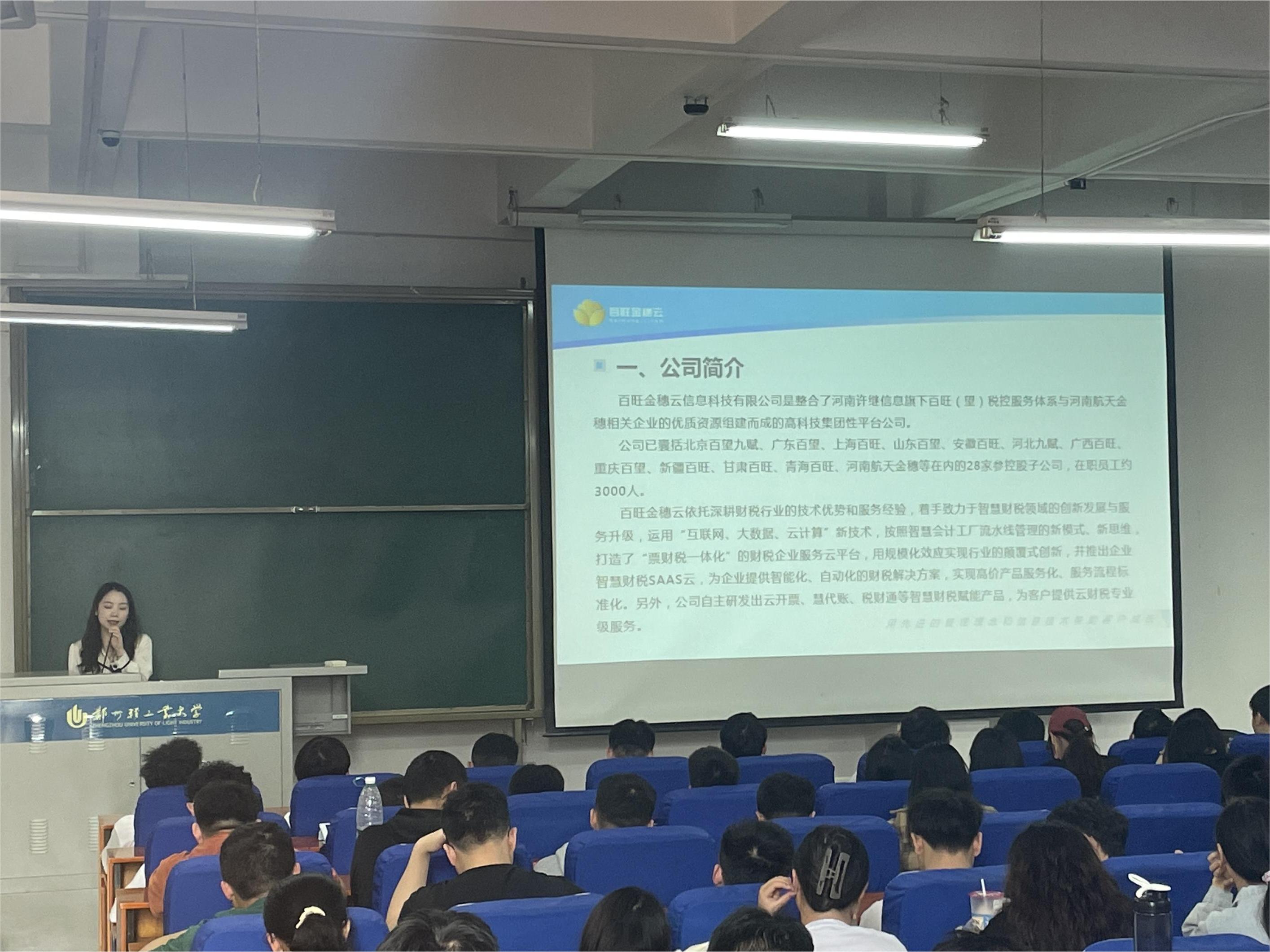 5月11日下午,软件学院在软件楼219室举办了大学生就业创业大讲堂活动,此次大讲堂邀请到河南航天金穗电子有限公司资深高级项目经理、专家级人才喻昆老师和人事部经理孙姗姗老师担任主讲人,就业专职老师、辅导员及200余名学生参加了活动,大讲堂由魏远耀老师主持。