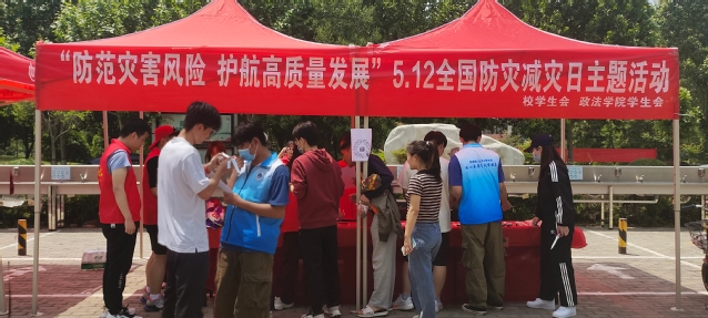 今年5月12日是我国第15个全国防灾减灾日。为增强学生防灾减灾意识,提高自救互救能力,校学生会于防灾减灾宣传周在两校区开展了“防范灾害风险 护航高质量发展”系列主题活动,在校内营造了良好的文化氛围。
