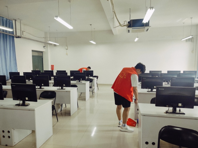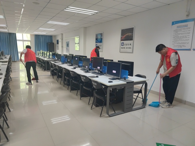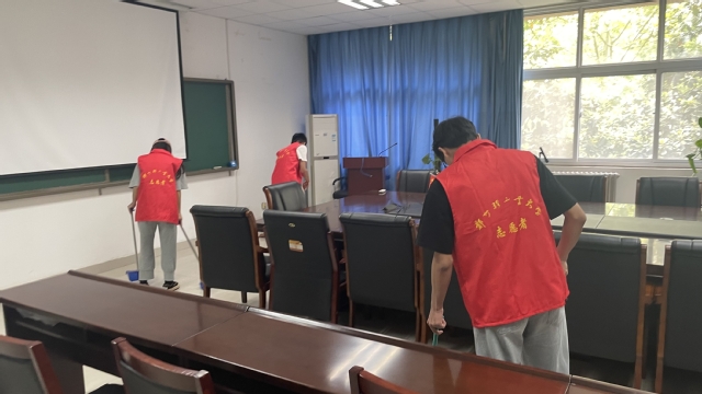 活动开始,志愿者们首先来到学院集合,按照提前分配好的任务,分工明确、仔细认真的开始对学院会议室、活动室、实验室进行物品整理归位和地面桌面的卫生清扫。经过志愿者们的打扫,能看到干净的地面、整洁的桌面、明亮的窗台、整齐的物品……志愿者们不怕脏、不怕累,一遍不行就再来一遍,室内各个地点的环境卫生在志愿者们的打扫清理之下,变得焕然一新。整个活动持续一个小时,同学们通过此次活动,也体会到了劳动的重要性和劳动育人的精神实质,纷纷表示这次主题教育活不仅让同学们对于劳动有了新的感悟了,培养了同学们的社会责任感,也提高了的社会实践能力,今后同学们将继承和发扬热爱劳动的优良传统,回报社会、回报国家。