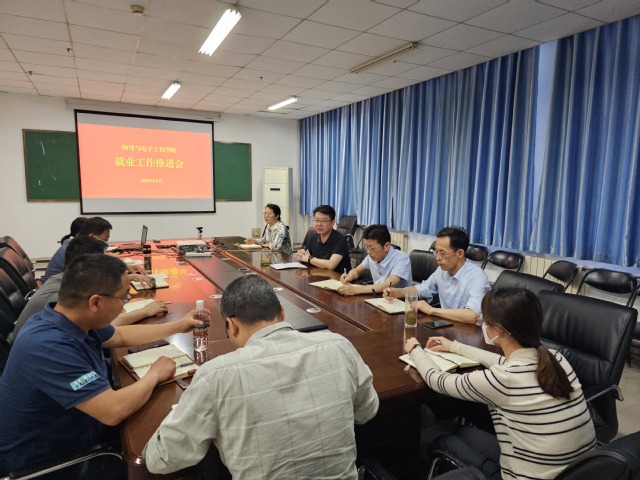 5月25日上午,物理与电子工程学院在四教楼510会议室召开2023届就业工作推进会。学院班子成员、各系部主任、全体辅导员、毕业班班主任参加了会议。会议由学院党委副书记李玲主持。