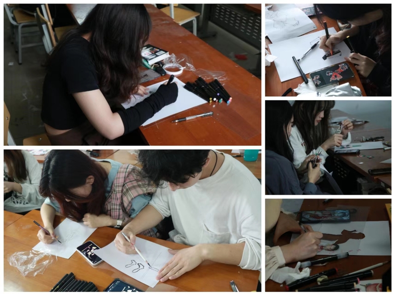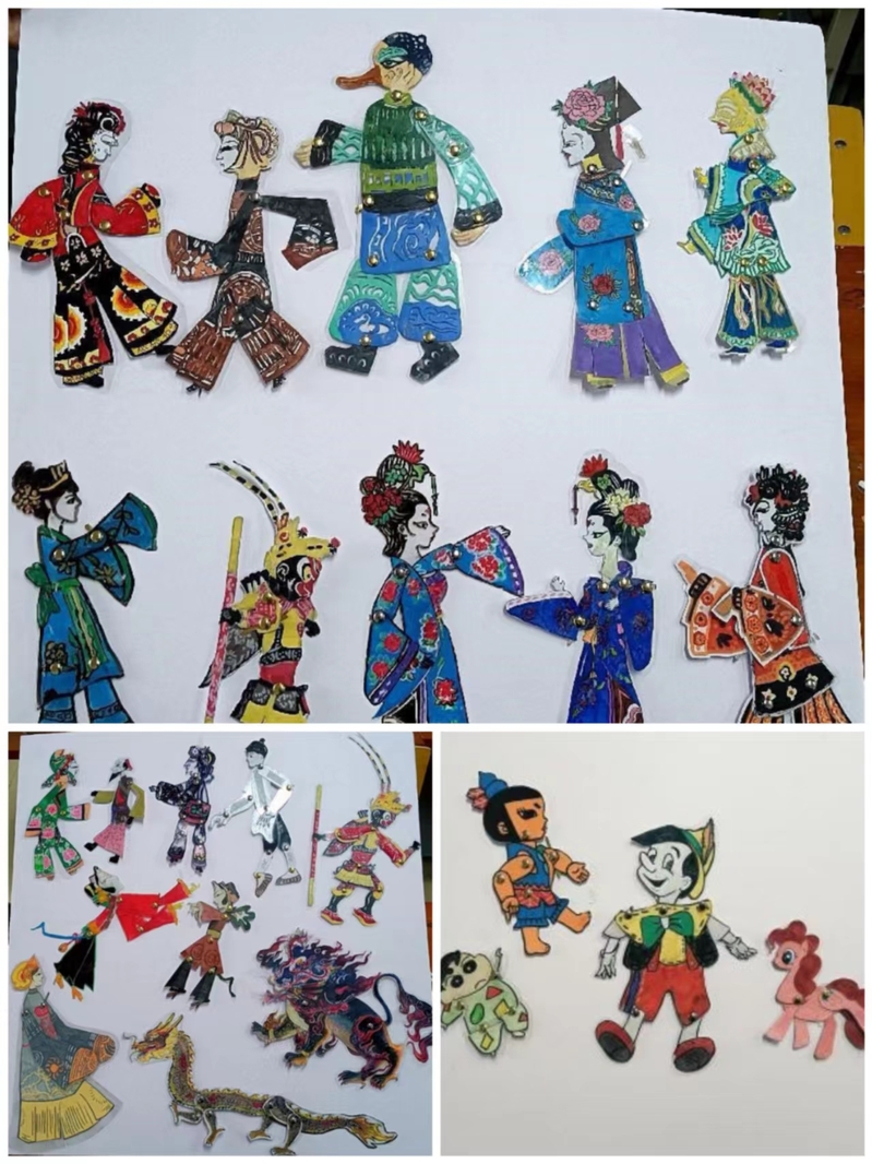 活动伊始,先由负责人介绍此次活动要求、相关非遗文化背景、传承意义及制作方式,接着让参与者们自行分组后,由负责人依次给小组分发材料,并进行了简单的引导。活动过程中,同学们相互配合,他们用心地画稿、镂刻、敷彩和钉缀,从构图到组装,最终呈现出一个个栩栩如生的皮影形象。在这一过程中,同学们在体验手工乐趣的同时既能近距离感受到中华传统文化的魅力,又可以培养团队协作精神。