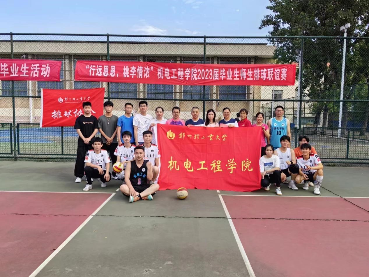 “行远思恩,桃李情浓”。为欢送毕业生,增进师生情谊,深化毕业生爱校情怀,6月1日下午,机电工程学院在东风校区排球场举办了2023届毕业生师生排球联谊赛。