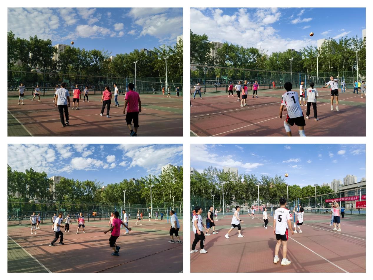 本次比赛由学院教师团队和毕业生团队分别选取代表参赛,参赛师生早早地来到了比赛场地,进行赛前热身,积极的准备比赛。随着裁判员一声哨响,排球比赛正式拉开帷幕。比赛过程中,队员们秉持“师生情谊第一,比赛结果第二”的精神,展开精彩对决,双方队员默契配合,互相加油鼓劲,各施绝技,发球、起跳、拦网、扣球,每一次精彩的传球与得分都引来欢呼阵阵。队员们跑位积极,奋勇救球,尽显体育竞技的精彩与热情,展示了精湛的球技和拼搏的精神。