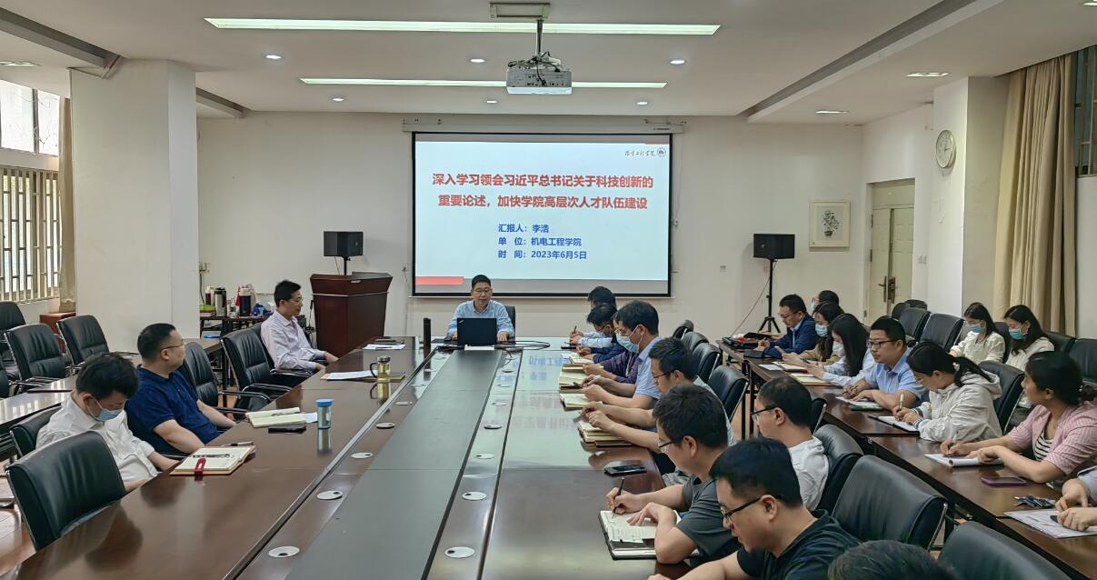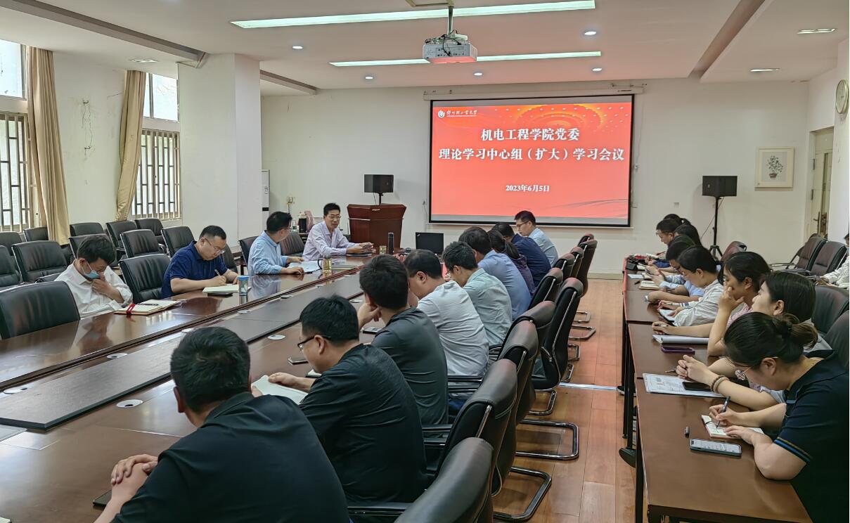 6月5日下午,机电工程学院党委理论学习中心组(扩大)集体学习会议在东风校区西三楼215会议室召开,学院班子成员、系(中心)主任、党支部书记、辅导员等参加学习。院党委书记刘国豪主持集体学习。