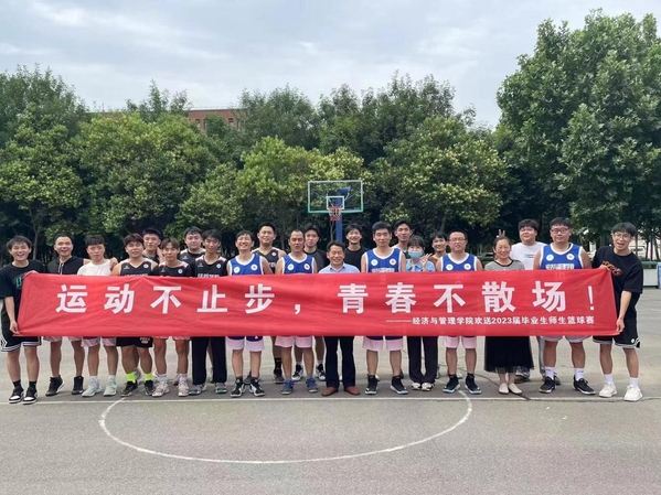 始于初秋,别于盛夏。为进一步做好毕业生文明离校工作,营造文明温馨、健康向上的校园氛围,增进师生之间的交流,6月5日,经济与管理学院举办“运动不止步,青春不散场”欢送毕业生师生篮球赛,由张省等五位老师组成的教师队伍和2023届毕业生组成的学生代表队在篮球场以一场充满激情又不乏温馨的篮球赛再叙浓浓师生谊、共话离别情。