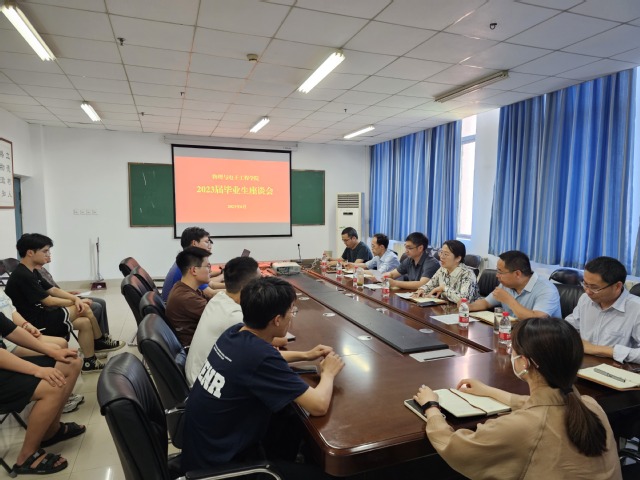 6月6日下午,物理与电子工程学院在四教楼510会议室召开2023届毕业生座谈会,学院班子成员、各系部主任、辅导员及2023届毕业生代表参加了座谈会,座谈会由学院党委副书记李玲主持。