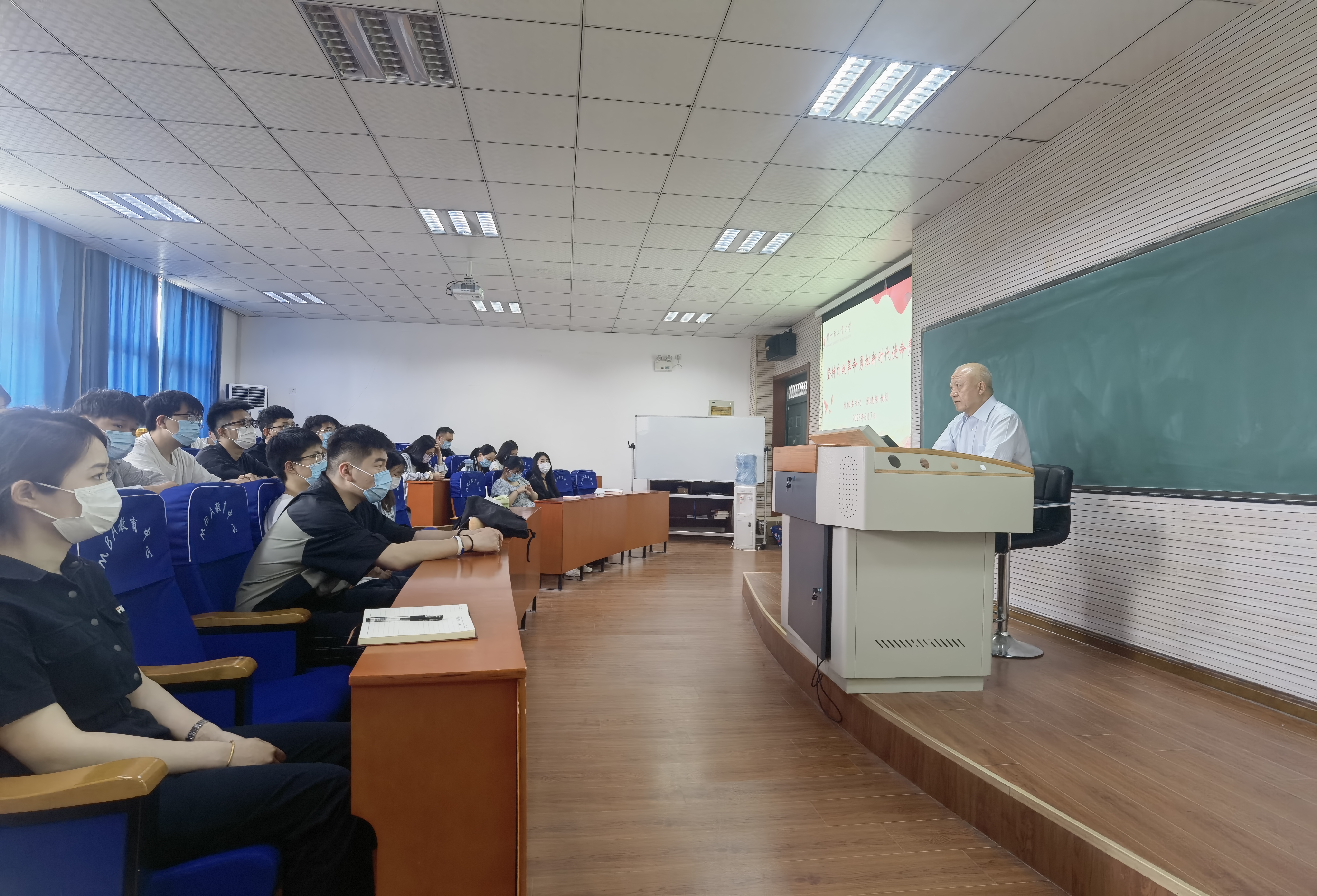 为推动学习贯彻习近平新时代中国特色社会主义思想主题教育走深走实,持续加强党员党性教育,6月7日下午,经济与管理学院党委邀请校纪委书记、监察专员张晓根教授在经管楼311教室为学院研究生党员讲了题为《坚持自我革命 勇担新时代使命责任》的专题党课。研究生党支部60余名党员现场聆听了此次党课,学院部分班子成员及学生党支部书记参加活动。