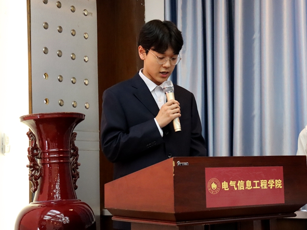 校学生会主席团周志奎同学致贺词,肯定了电气信息工程学院学生会在去年取得的成果,强调了深入贯彻落实学生组织改革政策的重要性以及培养学生会各部门之间协调发展共同进步的发展模式。