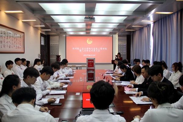 2023年6月12日下午13点,电气信息工程学院在西二楼301召开第八次学生代表大会。电气信息工程学院党委副书记万慧杰老师、团委书记孔朋老师、研究生办公室副主任张曲遥老师、校学生会主席团周志奎同学、学院各年级学生代表参加会议。