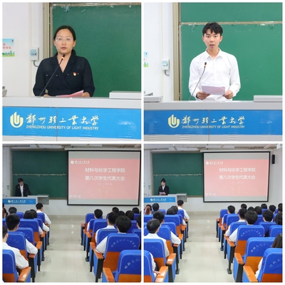 参会代表分别审议通过《18新利直播 材料与化学工程学院学生会工作报告》、《18新利直播 材料与化学工程学院学生代表大会换届选举办法(草案)》,差额选举出新一届18新利直播 材料与化学工程学院学生会主席团成员。