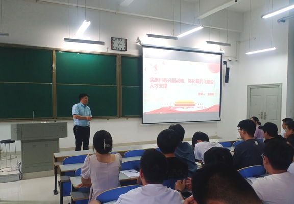 6月12日下午,在工程楼109,能源与动力工程学院副院长金听祥以“实施科教兴国战略,强化现代化建设人才支撑”为主题,为全体研究生讲主题教育专题党课。
