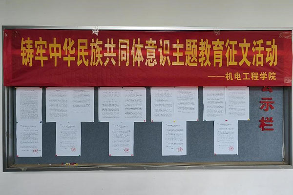 为深入学习宣传贯彻习近平总书记关于加强和改进民族工作的重要思想,弘扬民族团结进步主旋律,近期,机电工程学院组织开展了铸牢中华民族共同体意识主题教育征文活动,学院学生积极参加了此次活动。