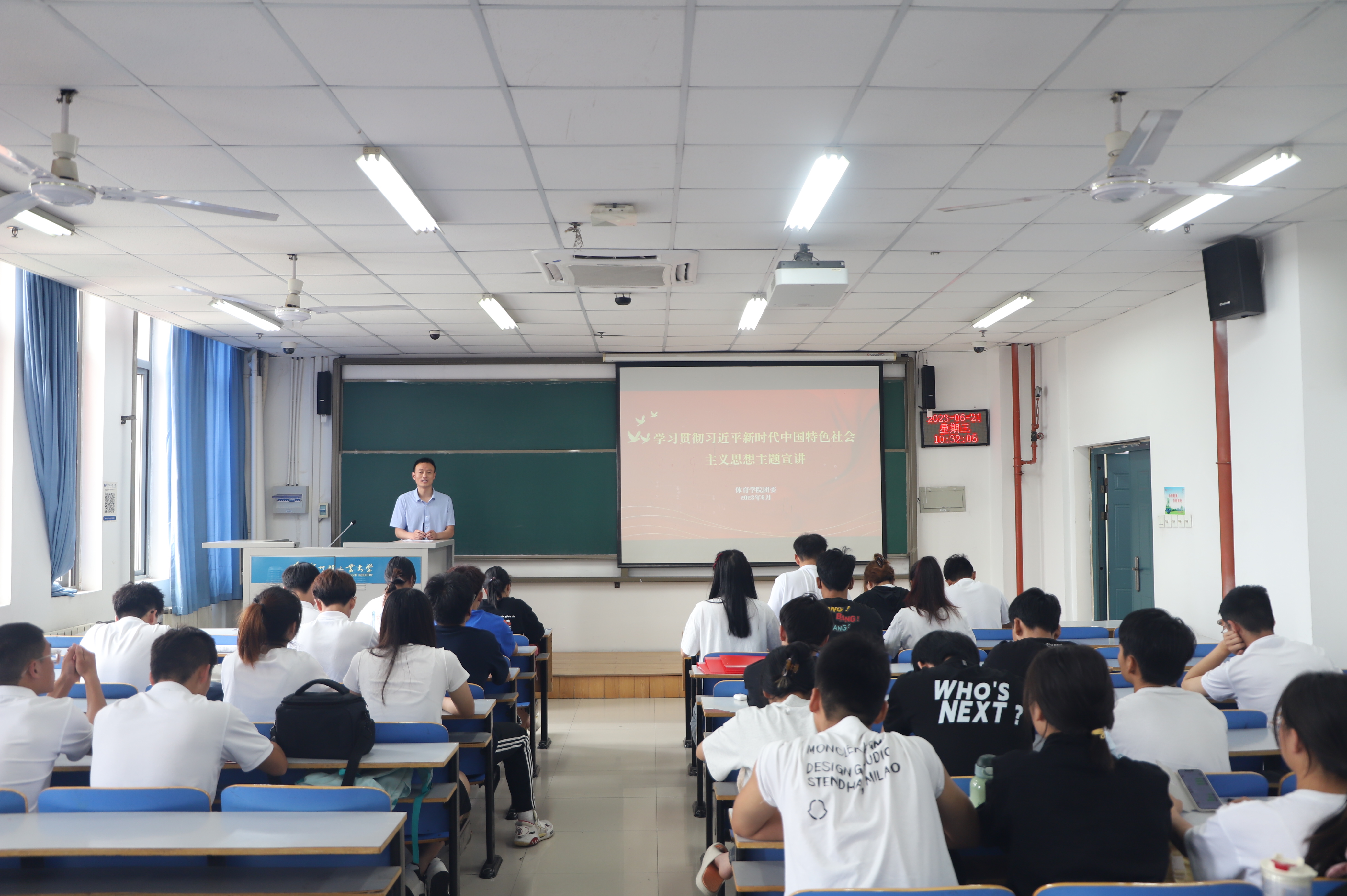 为深入学习贯彻习近平新时代中国特色社会主义思想,引领团员青年高举团旗跟党走,6月21日上午,体育学院在科学校区二教楼608开展了学习贯彻习近平新时代中国特色社会主义思想主题宣讲活动。本次宣讲由校青年讲师团成员、体育学院团委书记石庆福主讲,体育学院2021级和2022级全体青年团员参加了此次活动。