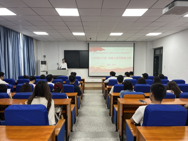 李燕老师以《心怀国之大者,以奋斗书写青春华章》为题,首先概述了习近平新时代中国特色社会主义思想的精神实质和丰富内涵,通过五个必须坚持阐述习近平新时代中国特色社会主义思想的世界观和方法论,以及贯穿其中的立场观点方法,并围绕当前国际国内形势,分析了国之大者的时代内涵,结合青年学生学习生活实际,对大家提出三点希望,一是要夯实思想根基,以习近平新时代中国特色社会主义思想为指导,坚定对马克思主义的信仰、对中国特色社会主义的信念、对中华民族伟大复兴中国梦的信心;二是要掌握强国本领,努力学习科学文化知识和专业技能,提高内在素质,砥砺道德品质,积极投身实践,把家国情怀落实到具体行动中;三是要勇担时代使命,将青春奋斗融入党和人民的事业,在国之大计中,践行国之大者,顽强拼搏,开拓进取,用奋斗书写璀璨的青春华章。