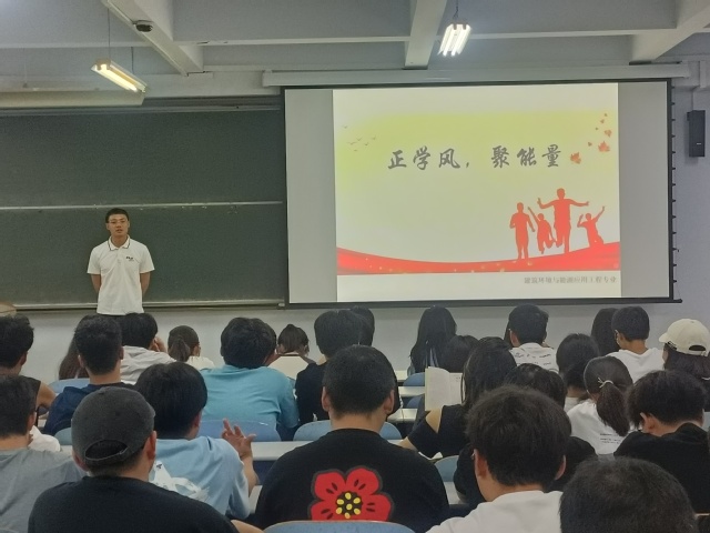 为加强校规校纪教育,有效助力学风建设入脑入心、见行见效。期末考试来临之际,我院在各班级组织举行“班主任说——正学风 聚能量”系列主题班会,班会由各班班主任主讲,全体学生参加。