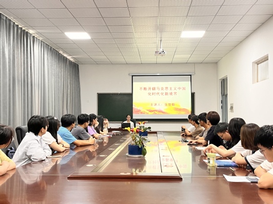 老师以不断开辟马克思主义中国化时代化新境界”为主题,强调习近平新时代中国特色社会主义思想开辟了马克思主义中国化时代化新境界,是当代中国马克思主义、二十一世纪马克思主义。《习近平著作选读》第一卷、第二卷集中反映了我们党推进马克思主义中国化时代化取得的重大理论创新成果,深刻展现了习近平新时代中国特色社会主义思想为丰富发展马克思主义作出的原创性贡献,为传承发展中华优秀传统文化作出的历史性贡献,为推动人类文明进步作出的世界性贡献。张老师希望青年学子认真学习研读,从理论与实践相统一、历史与现实相贯通、国内与国际相结合上,不断深化对习近平新时代中国特色社会主义思想开辟马克思主义中国化时代化新境界的理解和认识,踔厉奋发、勇毅前行,以更加强烈的历史主动精神把新时代中国特色社会主义事业推向前进。