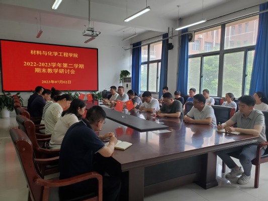 7月2号上午,材料与化学工程学院在学院222会议室召开2022-2023学年第二学期期末教学研讨会,院领导班子成员、各专业(中心)主任、学院督导组成员和教师代表30余人参加座谈。会议由副院长杨许召主持。