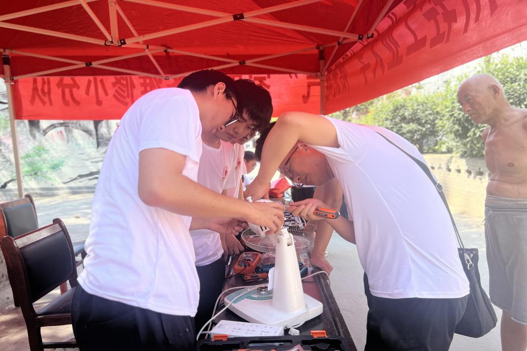 电气信息工程学院“阳光电气”家电义务维修小分队是一支持续开展三十多年家电维修下乡的实践小分队,在清东村村部前,张贴了整齐的横幅和宣传标语、搭建好家电维修平台,队员们一一对送来的故障家电进行信息登记、损坏原因检查、故障原因记录、清理维修等检修步骤,用真诚的态度解答村民的疑问。在维修家电的同时,实践小队还运用自己的知识为村民普及了日常家用电器的基本常识和原理。截止到活动结束,队员们共给村民们维修了电视机、电风扇、热水壶、电磁炉等各种故障家电五十余件,维修成功率达82%。